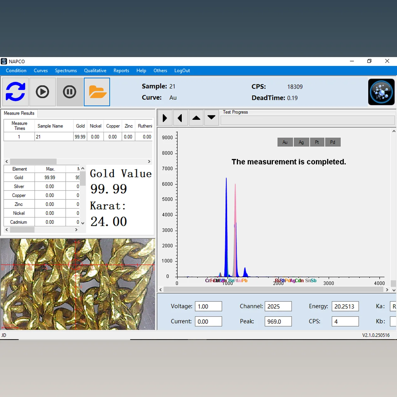 software: Napco XRF Precious Metal Analyzer |